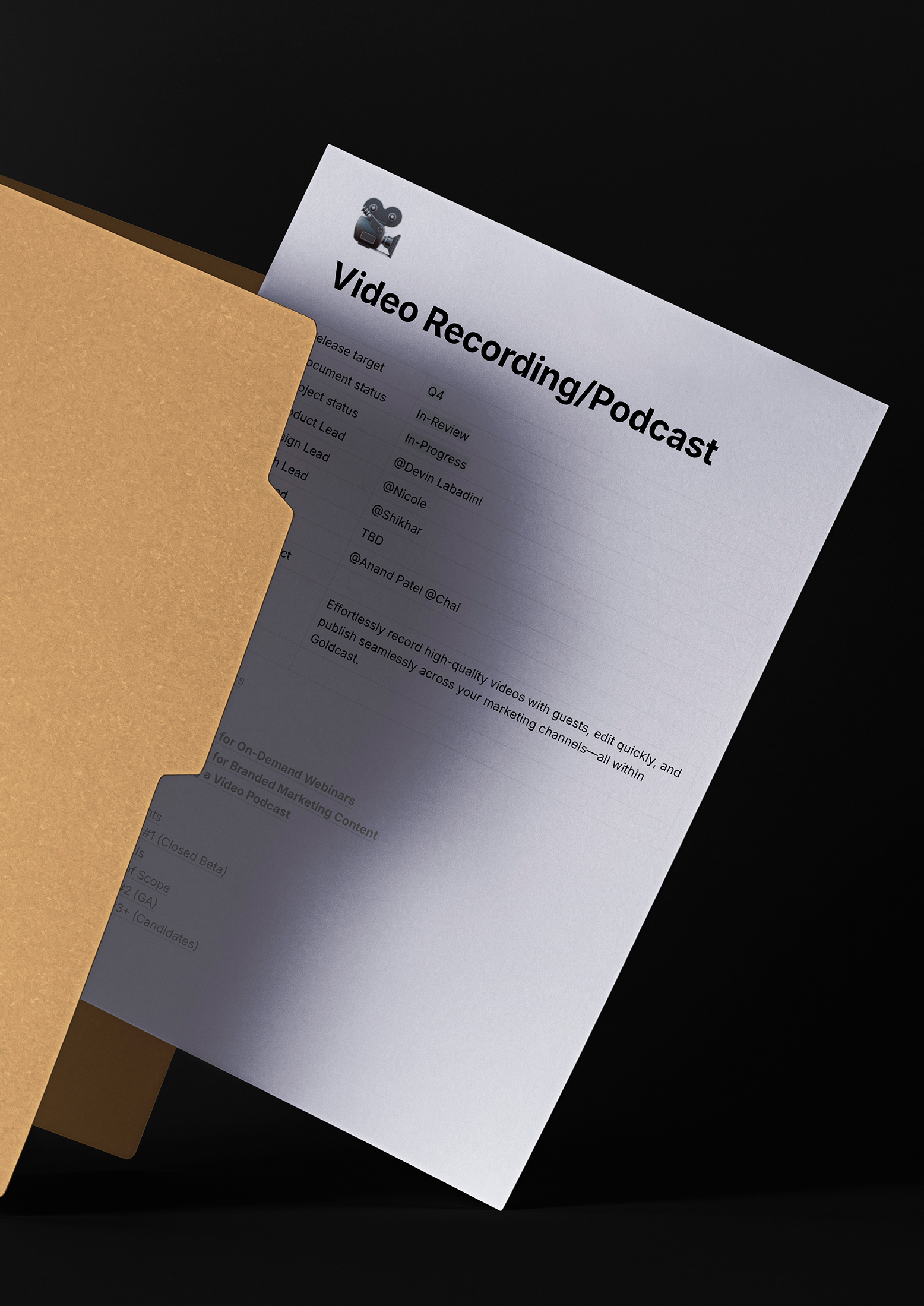 The goal was to streamline production, support collaboration, and deliver a cohesive end-to-end experience—enabling marketers and creators to produce professional, reusable content directly within the Goldcast platform.